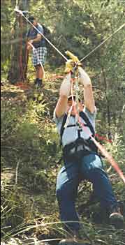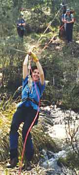 all cross successfully. Brett and Dave set up the Tirolean Traverse