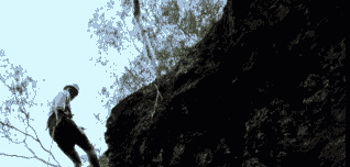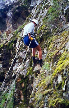 Brett, team leader, made the descent first. He chose a scenic route, safe for the inexperienced but with enough height to excite.